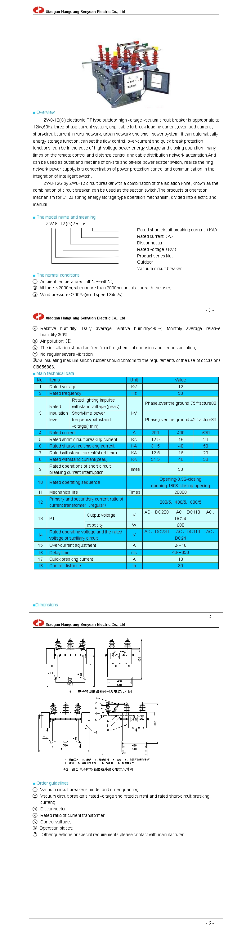 ZW8-12(G) electronic PT outdoor high voltage vacuum circuit breaker
