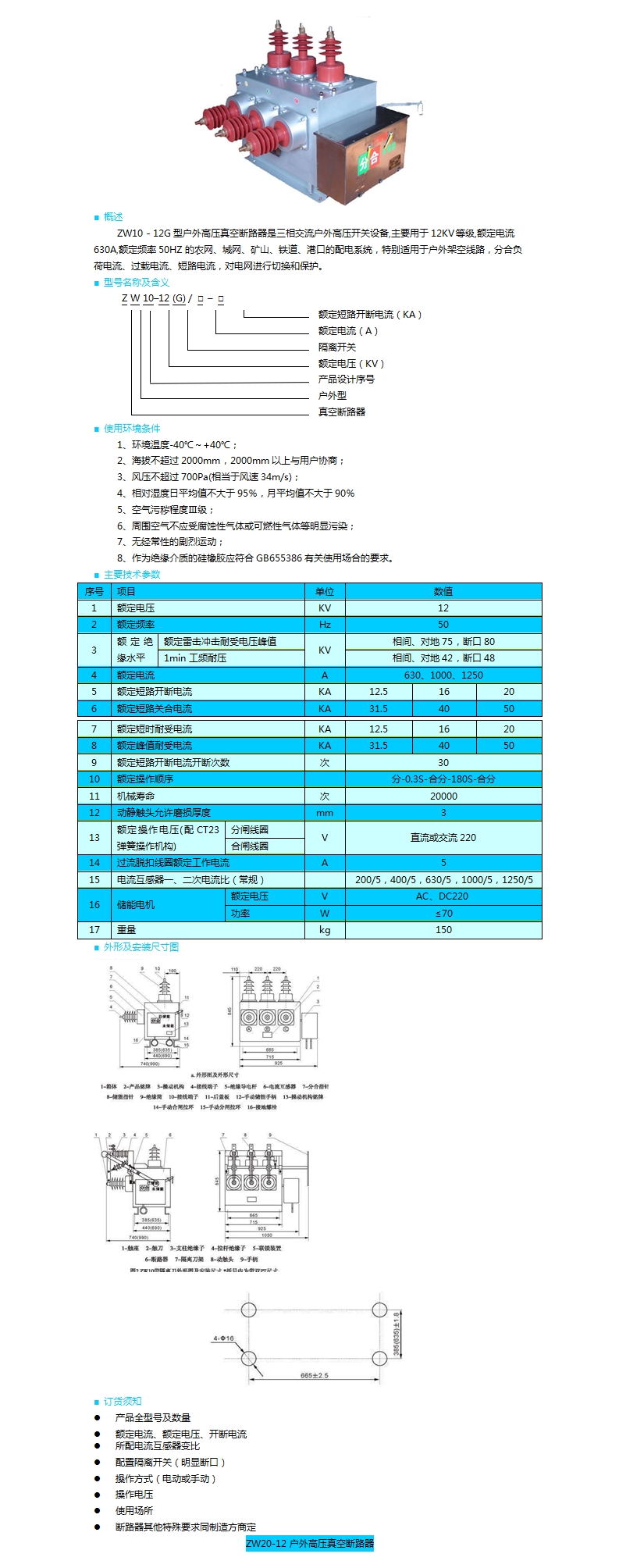 ZW10-12型戶外高壓真空斷路器