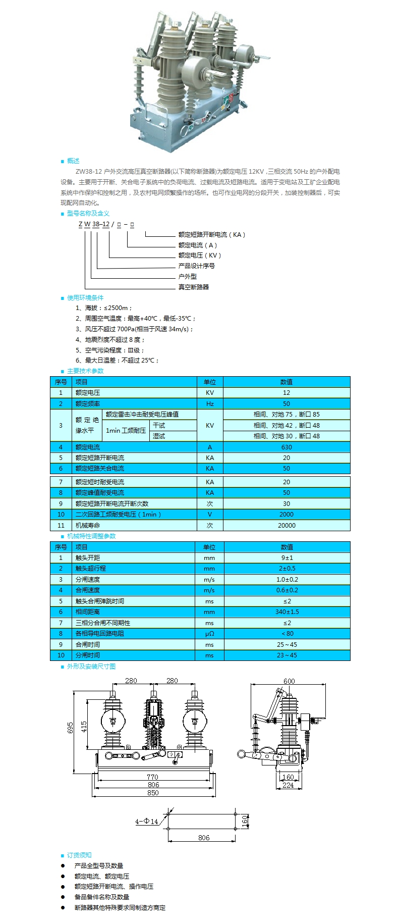 ZW38-12型戶外交流高壓真空斷路器