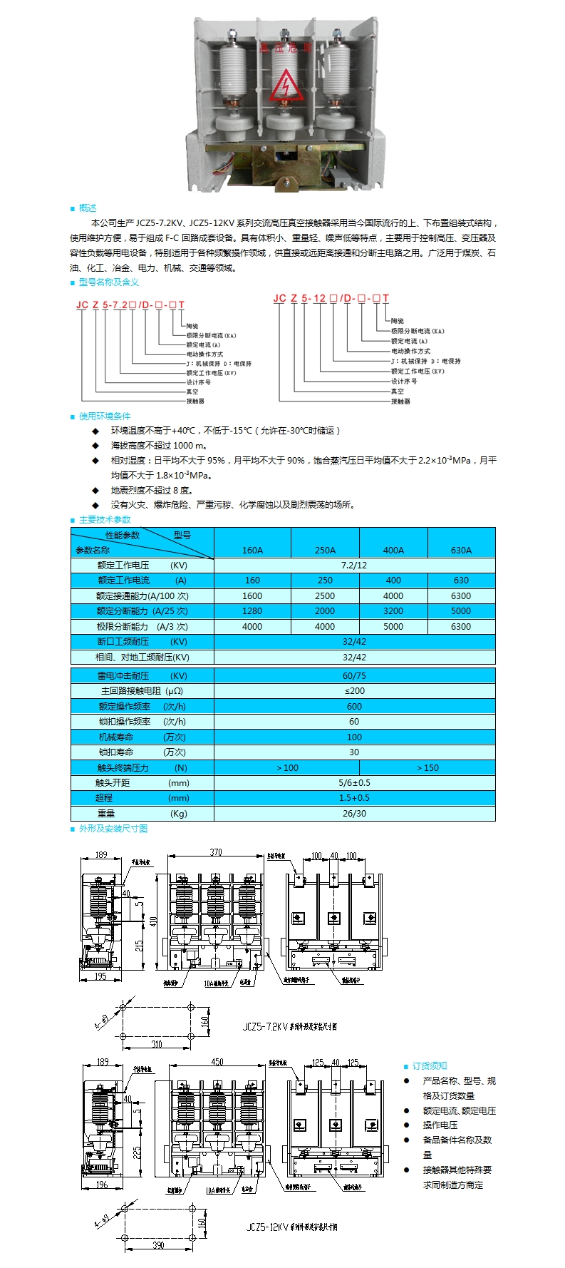 | JCZ5-7.2(12)交流真空接觸器 | |