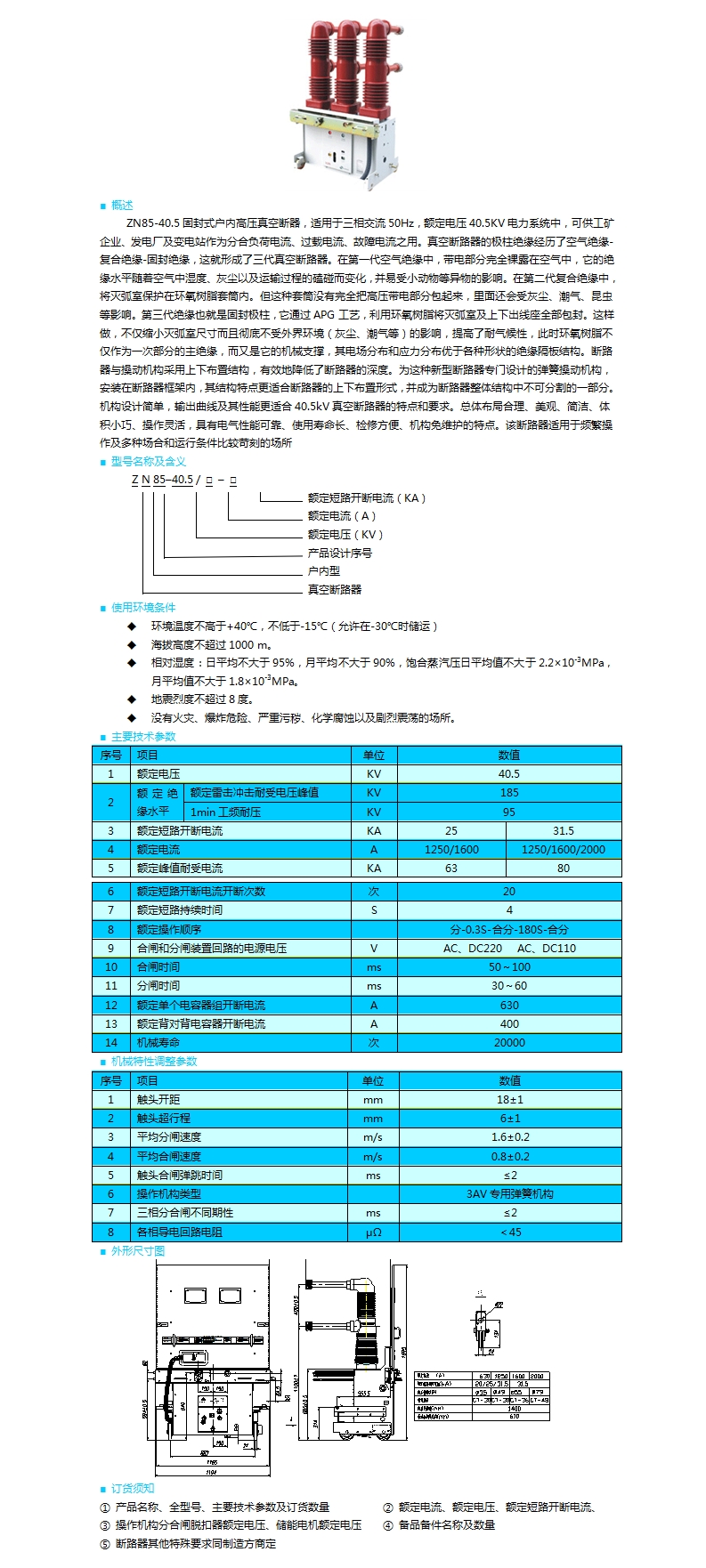 ZN85-40.5型戶內(nèi)高壓真空斷路器(固封式結(jié)構(gòu))